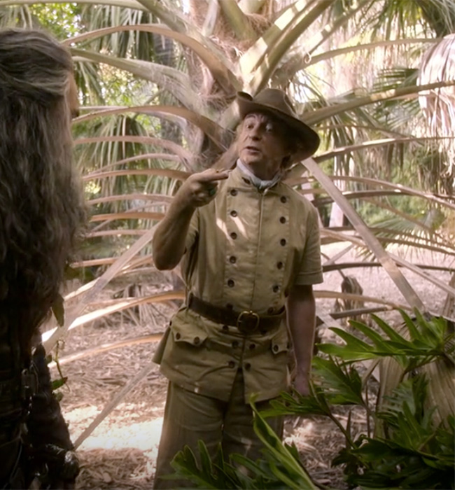 Stede buys a probably fake treasure map and takes Ed on a mostly fruitless treasure hunt, during which he wears this … Stede Irwin outfit.