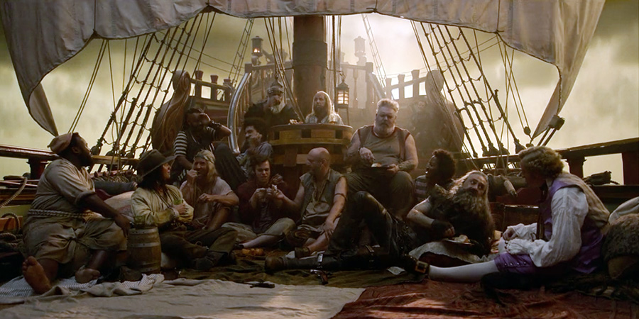 In episode 7, the ship runs out of oranges, and The Swede has scurvy so they really need to go ashore and get more. We get some backstory on the very secretive Jim, some romance between Jim and Oluwande, and meet Jim’s Nana (a nun who throws knives).