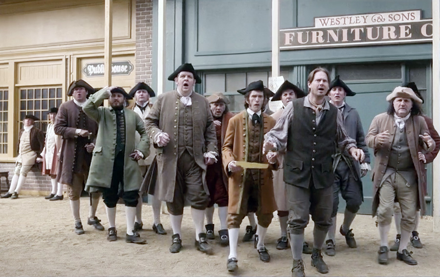 Final thoughts: Generally speaking, and making allowances for time and budget limitations, I like the costumes. Which is very surprising, considering they fill almost every single space on my bad 18th-century men’s costume bingo card! Overall, I think most of the designs work well for the show and are a good mix of historical and modern.