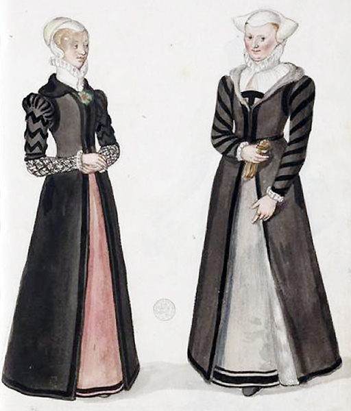 According to the interview with Arthur, this period “was very black and white in 1590. Queen Elizabeth wore a lot of black and white and they had to follow suit.” And indeed, black is one of the most prevalent colors shown in period imagery.