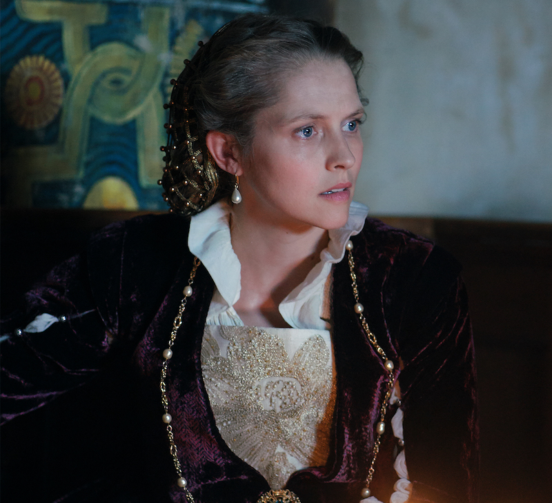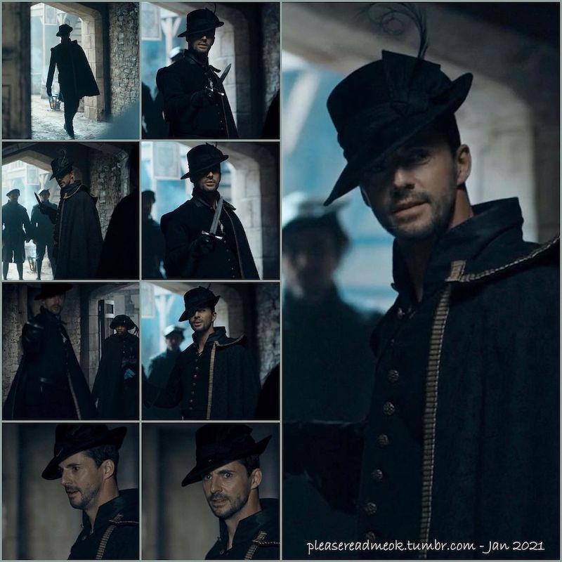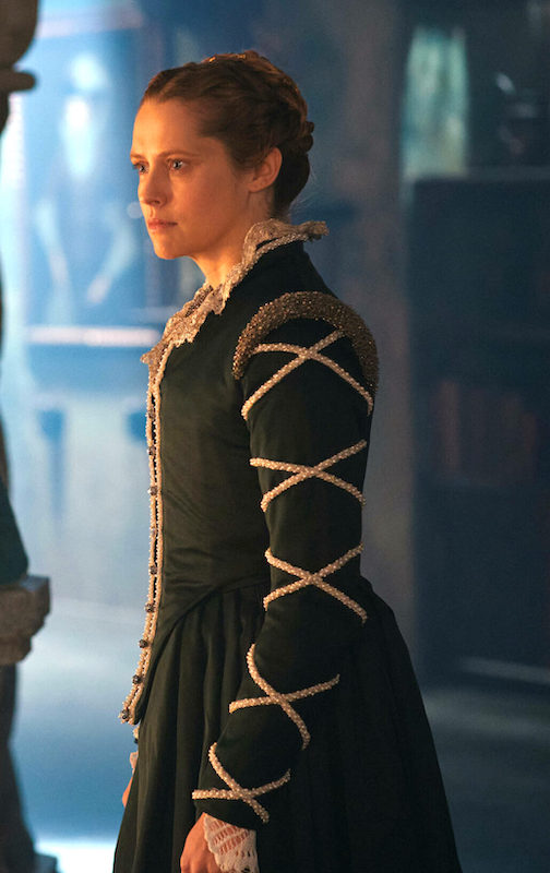 A Discovery of Witches (2018-) is a TV adaptation of a book trilogy by Deborah Harkness. In the first book/season, a modern historian discovers a magical book at an Oxford University library, which leads to her embracing the fact that she is a witch, as well as meeting other “creatures,” including demons and vampires — and falling in love with one of the latter. In the second book/season, Diana and her vampire boyfriend Matthew go back to Elizabethan England — 1590 to be specific. I’ve been seeing lots of images from season 2 and been generally impressed, but it’s taken me until now to watch the series.