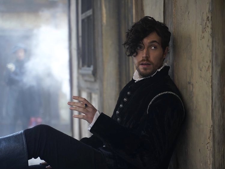 - Christopher Marlowe’s (Tom Hughes: Victoria, Red Joan, Dancing on the Edge) boy band hair!