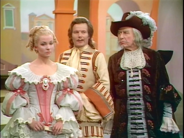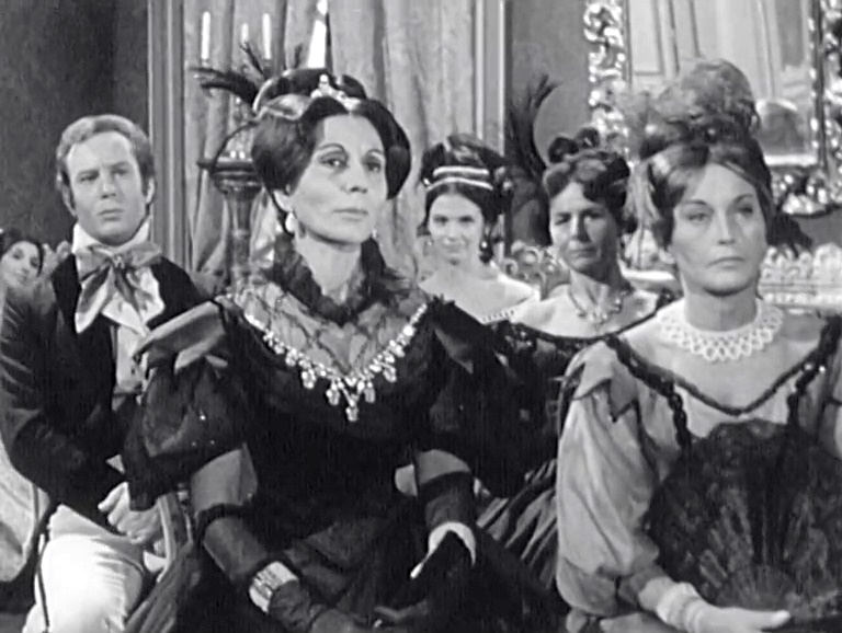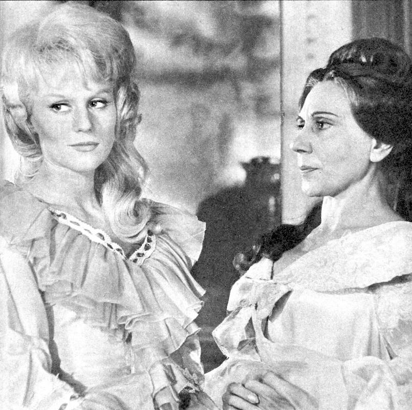 Costume designer Yvonne Sassinot de Nesle is one of France’s most celebrated, winning the very first César award (the French Oscars) for Swann in Love. She began as a painter, studied art history, designed for a lot of 1960s-70s TV, switched to film, then designed for a number of theatrical productions, and has now retired to return to painting. Let’s take a look at her frock flicks resume, with quotations when I can find them about her work. And because there’s a lot of bad TV screenshots to start, she’s also known for Vatel, so this is worth working your way through!