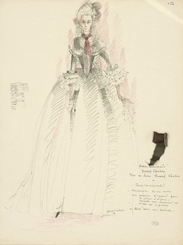 Napoléon tries (and fails) to invade Egypt. Nesle apparently designed SIX THOUSAND costumes for this? I got excited and skimmed the film online, particularly after seeing the sketch below, but did not see anything that seemed worth firing up.