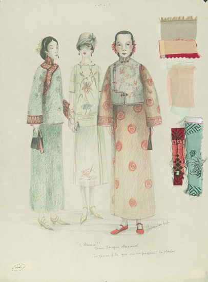 “Among the sources were the French Vietnamese Library of Saigon and the Botanical Museum of Saigon. De Nesle also used her family’s personal papers… Every garment was custom-made, most in the production’s workshops in Saigon. The Chinese Man’s suits were made by the French tailor Pierre Betoulle and his shoes by Lobb. The Chinese bride’s wedding robe belonged to De Nesle’s mother. Silks for the Chinese Man’s suit and the wedding party were made in Da Nang” (French Colonial Wear).