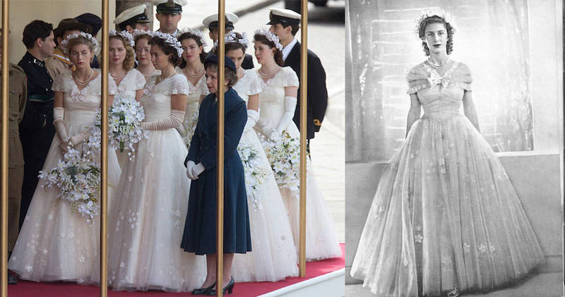I’ve been catching up on The Crown (2016) and enjoying what I’ve binged so far. Overall, the production appears to have taken great pains to maintain historical accuracy, and with so much primary source material in the form of photos and video, it’s a good thing, too. Allegedly costing $130 million, I gotta hand it to them for putting that money too excellent use on the costumes, which were designed by Michele Clapton of Game of Thrones fame.