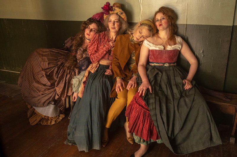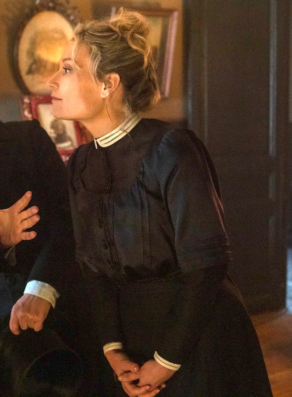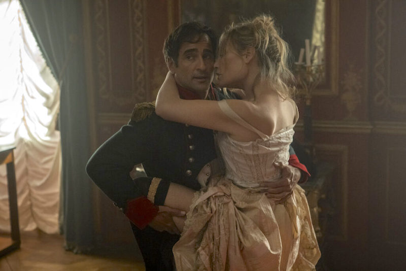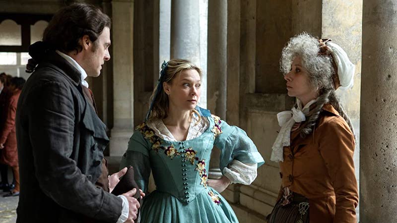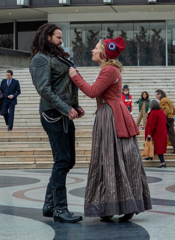 The costumes were designed by Thierry Delettre (modern-set Before Sunset, as well as Cyrano, My Love; Eiffel; and two Three Musketeers films coming in 2023). Let’s take a look at the historical costumes in chronological order (not necessarily the order they appear in the film). Note that lead character “Charlie” is often dressed in the wrong period, because she’s jumping around from era to era.