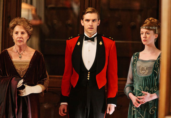 From here on out, I’m including the Christmas special (which the first season didn’t have) as part of the previous season’s date range because that’s how the episodes are packaged in the U.S. on PBS and on DVD. Usually, this works best thematically too. Series two is pretty much all World War I, except for the Christmas special, which is the first and so far only one to actually take place in December at Christmas. In this second season, the men (including Lord Grantham and Mathew Crawley) sport British military uniforms, natch, while the women’s clothes become a touch more utilitarian and subdued, as befits a country at war and an estate turned into a temporary hospital. Sybil also takes on the role of nurse, and Isobel Crawley looks quite professional in her trim suits as hospital administrator.
