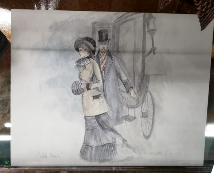 Here are two of Gabriella Pescucci’s sketches for other costumes for Michelle Pfeiffer as Ellen Olenska:
