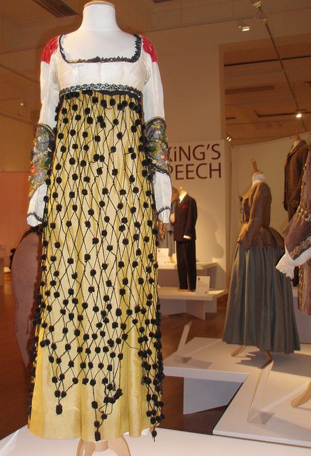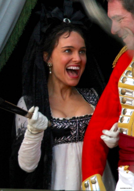 Now we move to 1808, and Portman is playing Inez’s daughter, Alicia. Her main dress caused ALL SORTS of raised eyebrows when stills first came out — trust me, I remember: