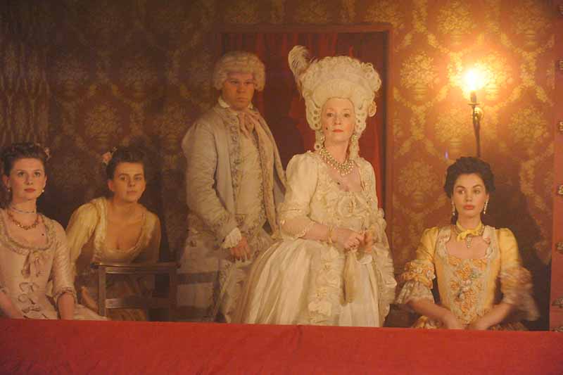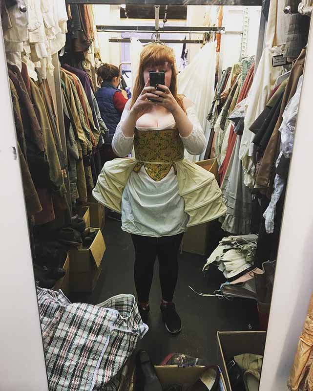 After a couple hours of Internet stalking sleuthing, I was relieved to see that Harlots, produced by Hulu and British channel ITV, looks to be using pretty decent 18th-century costumes, wigs, and makeup, plus period settings and accoutrements. Sure, it could still suck in a million ways, and they could screw up how the costumes are worn, but these behind-the-scenes images seem to indicate that the production team is giving it a better try than War & Peace, at least.