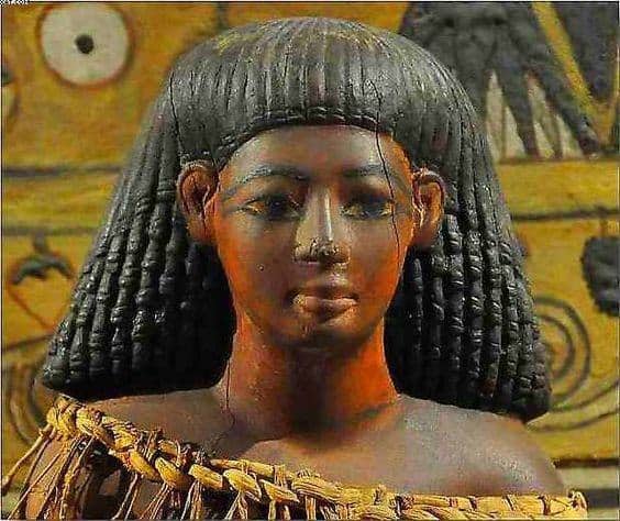 That elegant gentleman whose statue you’ve shown for comparative purposes is wearing a wig. He was a member of Pharaoh’s tomb-building crew, so in day-to-day life his attire would be much simpler–he’s likely to have had his head shaven, and he certainly would have if he was also acting as a priest.