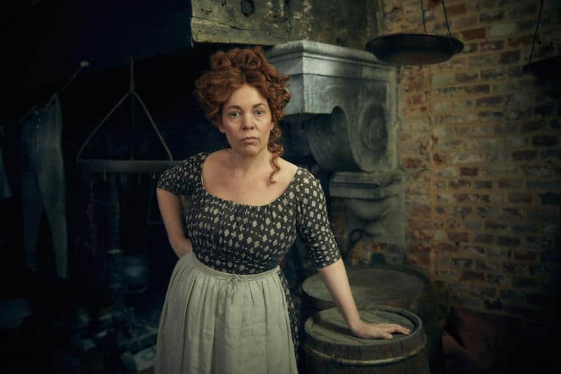 “If there was anything that I wanted to avoid from the film it was coming anywhere near that [portrayal] because this version is so rooted in reality, it really wouldn’t work for us. I loved Helena’s take on it, with Sacha Baron Cohen as this theatrical double act wearing those visual distinct costumes which completely exaggerated the way that they moved and behaved. So for Olivia [Colman], I was very relaxed and I didn’t want to make something elaborate for her. I wanted to give her something as simple as possible, a seemingly boring dress, but one that gave her the posture to move as she wanted to as that character. She was the easiest one to dress” (Les Misérables: how Olivia Colman, Lily Collins and Ellie Bamber were transformed with ‘punky, romantic’ costumes).