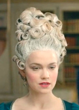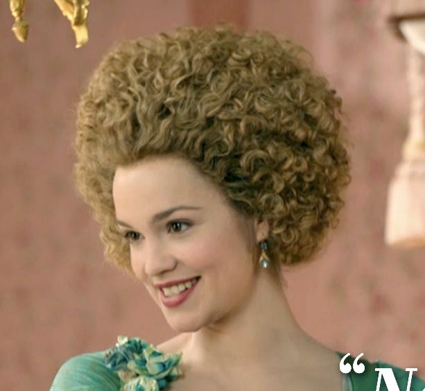 And all in the same period, she also rocks this soft, romantic take on mid- to late 1780s hair: