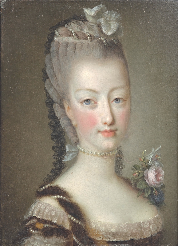 Things continue in that vein until 1774, when Louis XV dies and Louis XVI becomes king. Suddenly out of nowhere, Marie-Antoinette starts rocking a beautifully styled, but completely incorrect on several levels, frizzy mid-1780s style: