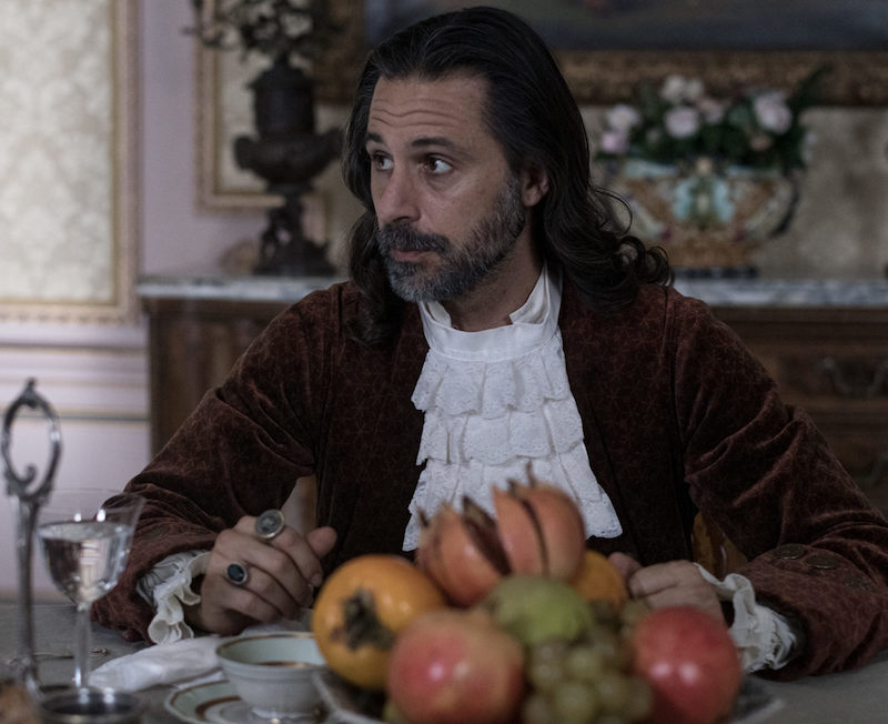 The duke of Castamar gets an actual “powdered” wig … with a totally obvious lace front: