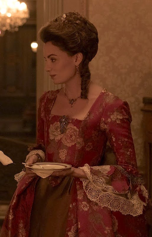 Actual robes à la française are worn, which are at least vaguely more period (being 1740s-60s) than the fitted-back dresses we also see (which are 1770s-80s):