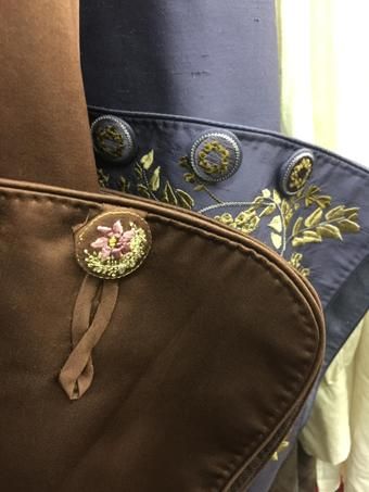 Close-up embroidery on some gents’ cuffs. The embroidered buttons are 100% 18th century and FABULOUS. And do I see some hand stitching??