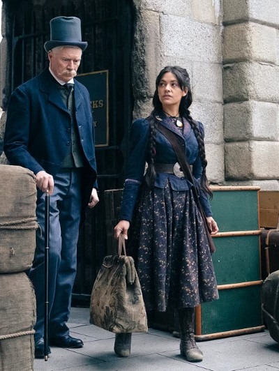 Sherlock & Daughter (2025) is a new miniseries from CW that stars David Thewlis as Sherlock Holmes and Blu Hunt as Amelia, a young American woman who believes that Holmes is her true father. It’s set in 1896, which would be fine if the plot wasn’t skirting way too close to fanfic territory for comfort. Holmes and Amelia team up to solve various crimes, all while each has a specific crime that they’re mainly interested in solving and which may actually be linked, but you’ve gotta get through a lot of sassy dialogue between them before the actual plot takes you anywhere productive and/or interesting.