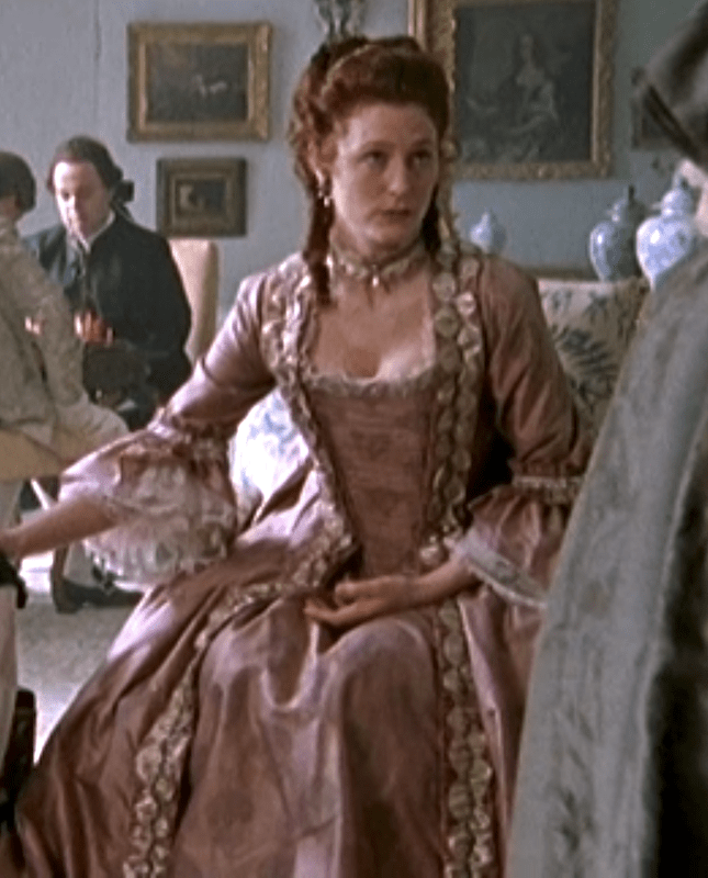 Most important, the costumes, by James Keast, are very close to spot-on for the period, covering the 1740s through the 1780s, with some obvious budgetary limitations (in that many costumes are worn for “decades”). I had hoped that this post would be short, because didn’t I discuss everything I needed to when covering episodes one and two? Well, five million screencaps later, apparently no I didn’t. These episodes cover from 1759ish to 1769ish, and there’s plenty of interesting things to talk about, especially court dress!