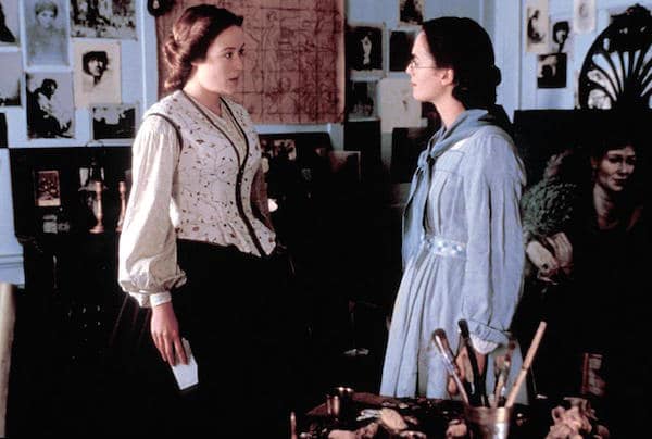 So let’s ignore them and look at the Victorian poets, Randolph Henry Ash (Jeremy Northam), based on Alfred, Lord Tennyson, and Christabel LaMotte (Jennifer Ehle), based on Christina Rossetti. Christabel’s lesbian lover, Blanche Glover (Lena Headey), is also part of the historical flashbacks as the modern characters uncover the hidden affair between Ash and LaMotte. The subtle 1850s-1860s costumes were designed by the always excellent Jenny Beavan and reflect the upper-class artistic world Ash, LaMotte, and Glover live in. The look is not flashy, but it’s rich, soft, and conveys each character’s status and occupation well.