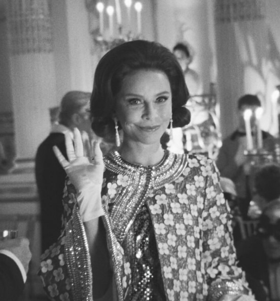 The V&A have Lee Radziwill’s dress! It was by Mila Schön and was part of the huge “donation” made in her name by Cecil Beaton after he raided her wardrobe (and quite a lot of other people’s) for his 1971 Fashion: An Anthology exhibition. Much to the surprise of many ladies who discovered that he hadn’t just borrowed their Diors and Balenciagas, but had given them outright to the V&A. I believe it was Lee who complained she’d been left with almost nothing to wear….