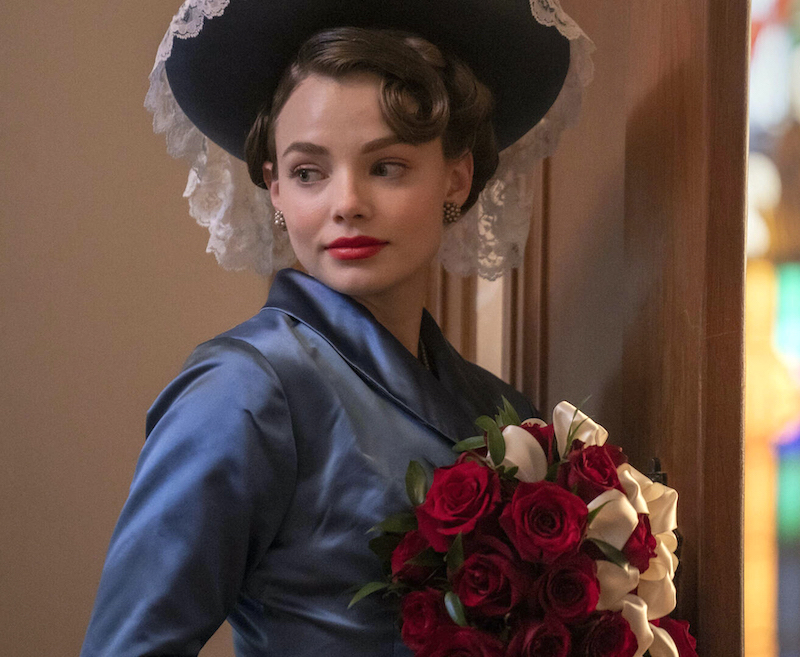 Again they recreated Betty’s wedding outfit — it was her second wedding, so no white dress: