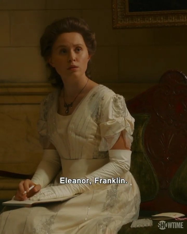 They didn’t always stick to literal recreations, for example. Eleanor Roosevelt wore a huge floral necklace to her husband’s first inauguration, which designer Sejlund told the New York Times “looked almost ridiculous when you see it with a modern eye” (Fashioning ‘The First Lady’). And the production did drop that element: