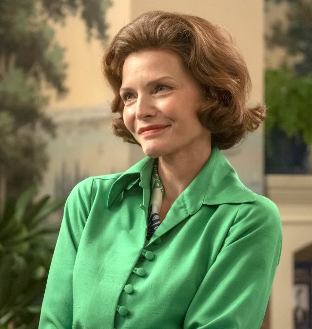 “There are so many images of all these ladies, so we had to do replicas of some of their most iconic wardrobe items which was really interesting and fun to do, because we have actresses playing them that don’t have the same shape body or height but still, you have to make it feel like the first lady they are portraying” (Costume designer Signe Sejlund on capturing the glamour of US First Lady fashion).