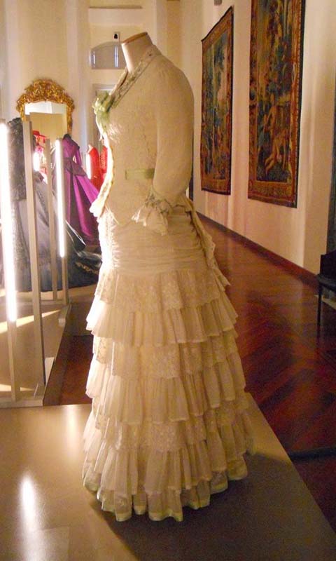 In the movie I think the narrator says that it was the custom in those circles for brides to wear their wedding dress to other events for the first year after the wedding. We do see May wearing her wedding dress at the theater or opera. I’m sure someone with a better memory can elaborate or correct me!