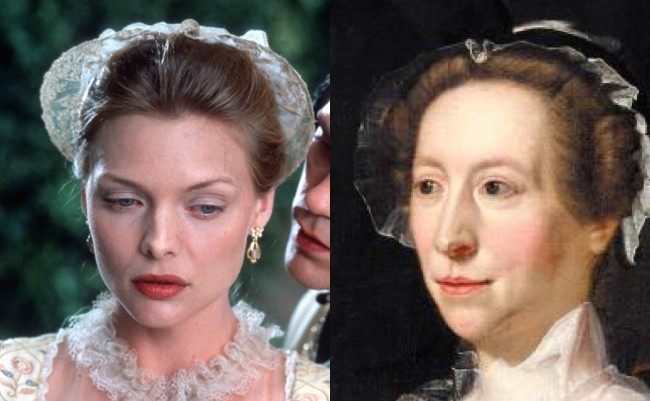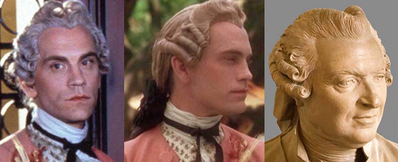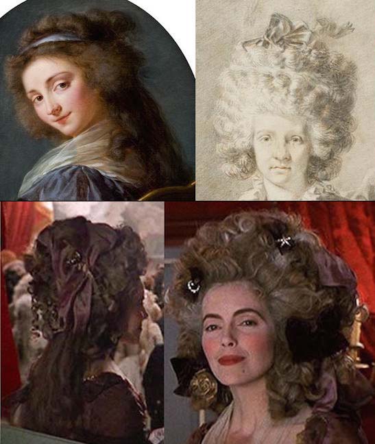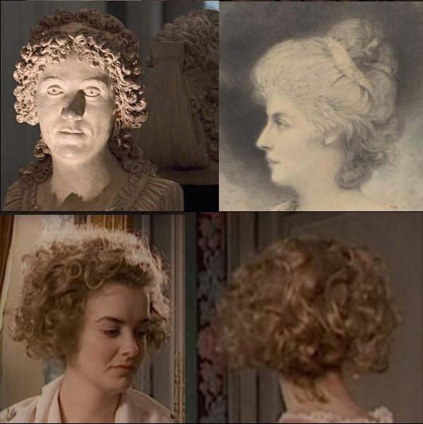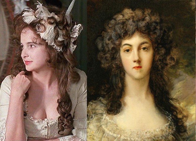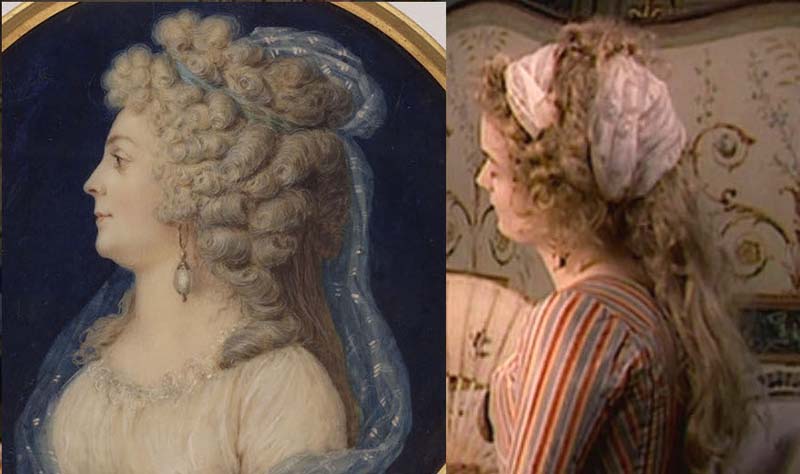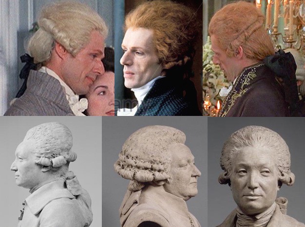 I raved about the hair and wig styles when I reviewed this movie, but let’s look at it again. This film joins Jefferson in Paris in really getting the late 1780s right, and what I love is how well they matched the actors’ hair/wig styles to the real people they were portraying.
