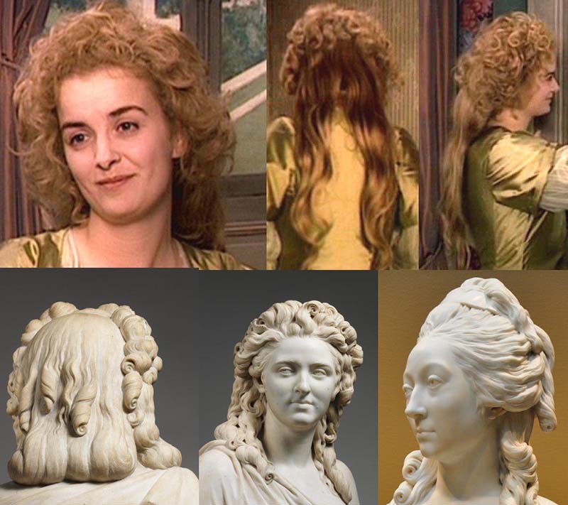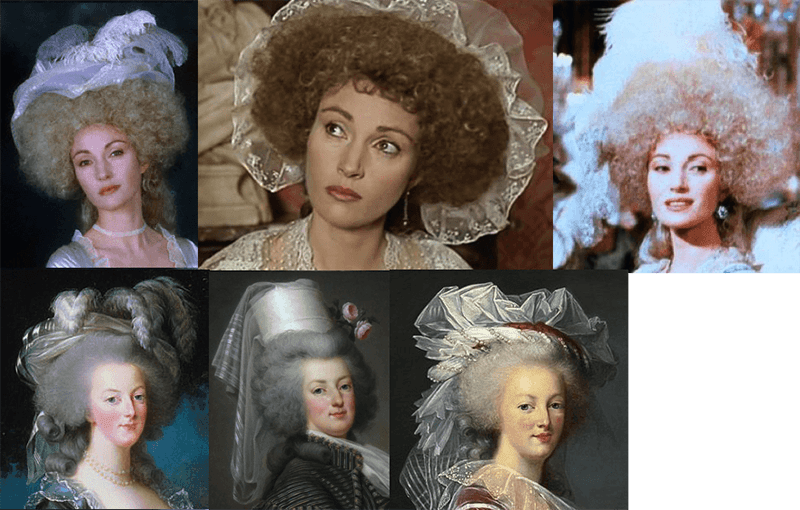 Probably the best depiction of the late 1780s on screen, when women’s hairstyles had turned away from the tall and wide styles we associate with Marie-Antoinette and into the faux-naturalistic, post-coital, frizzy styles of the 1780s. There are one or two missteps, and they definitely stay on the BIG end of the hairstyle spectrum, but otherwise Jefferson in Paris gets 1780s hair and wigs right. Oh, and there’s a hilarious and fascinating scene where we actually get to see an actress have her hair styled!