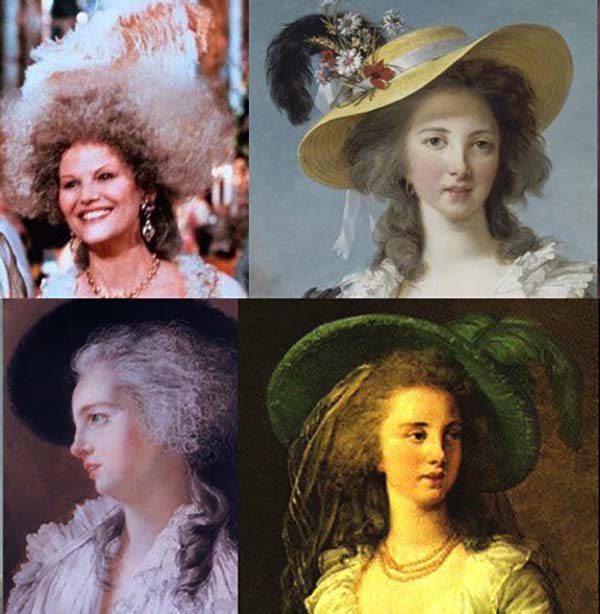 “Big hair” doesn’t begin to describe the towering masses of curls — the more enormous the better — worn by wealthy Frenchwomen. Hair designer Carol Hemming notes that a decade earlier in the period, wigs had reached heights of 2 to 3 feet; vases tucked inside the hair held fresh flowers. Later, such decorations as stuffed birds, jewels, and yards of ribbon and lace were seen.