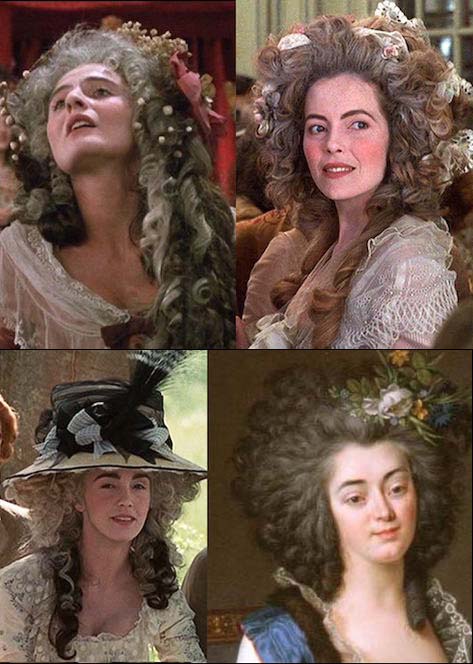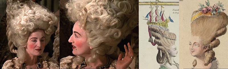 Marie-Antoinette (Charlotte de Turckheim) lusts for a miniature ship at full sail in her tresses. Maria Cosway (Greta Scacchi, pictured) wears three or four hairpieces at once, all oiled and powdered. The actress washed her hair no more than once every 10 days to avoid a sheen.
